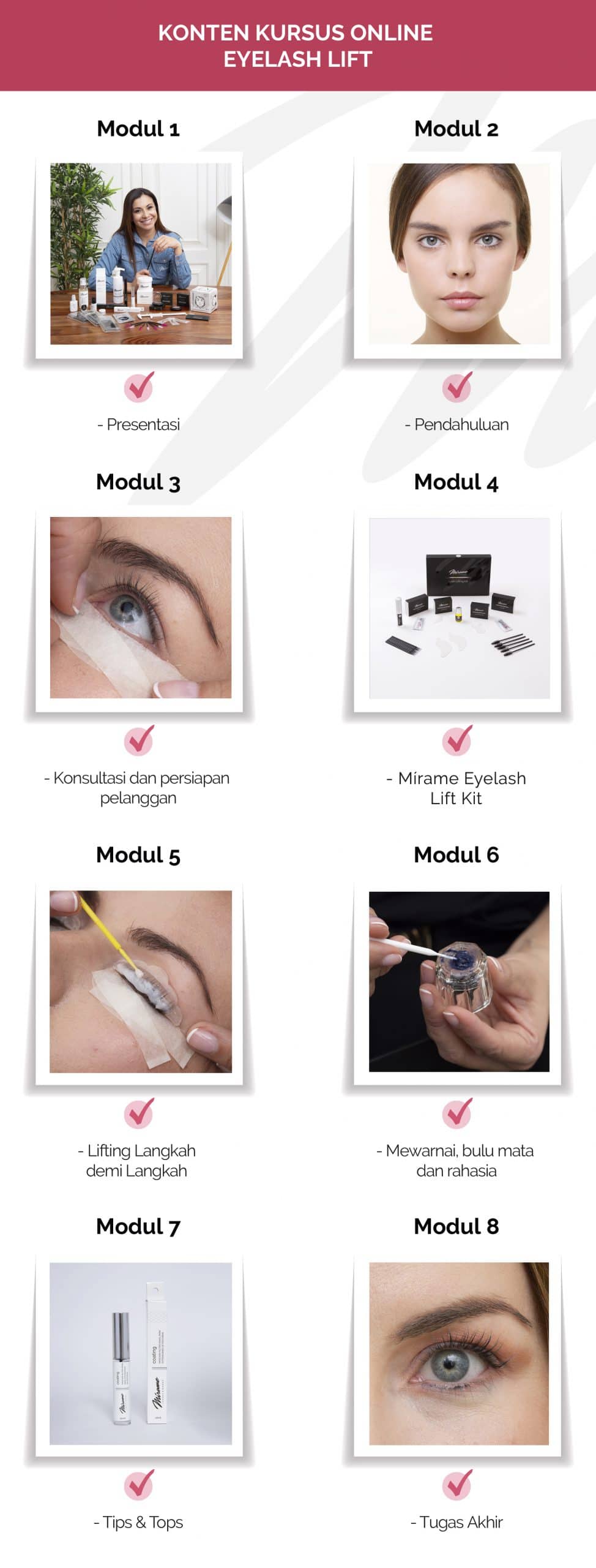 KURSUS ONLINE TANPA KIT: Setelah melakukan reservasi, Anda akan menerima email berisi akses ke kursus. Anda juga akan memiliki akses ke penasihat Mírame untuk menyelesaikan semua pertanyaan Anda di Kursus Angkat Online. *Kelas pertama bersifat teoritis, tetapi dari langkah demi langkah Anda akan membutuhkan bahan berikut untuk berlatih: 5 eye pads + 1 alat bersih + 2 gel (masing-masing 15 unit) + 1 nutrisi + 1 lem