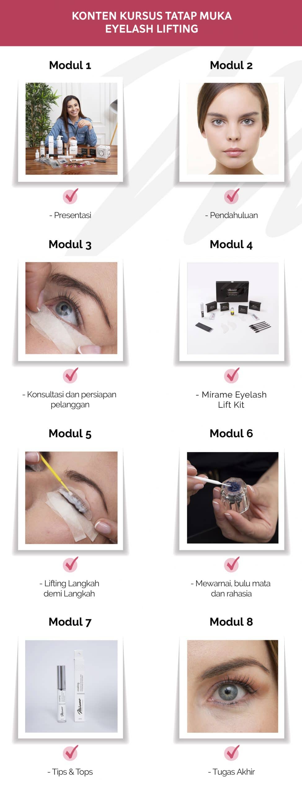 Kursus Lash Lifting pada bulu mata bagian atas.