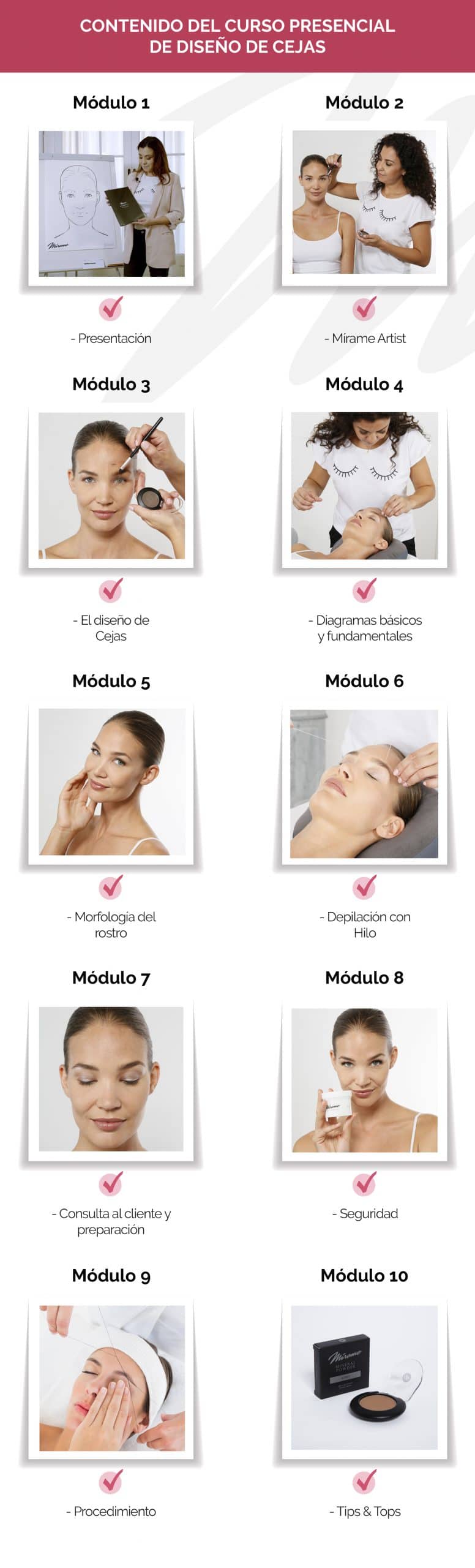 Durante el curso se adquieren los conocimientos y técnicas necesarias para ser una máster en diseño de cejas y se practica con una modelo real (aportada por el alumno*) con las pautas y supervisión continua de la formadora.